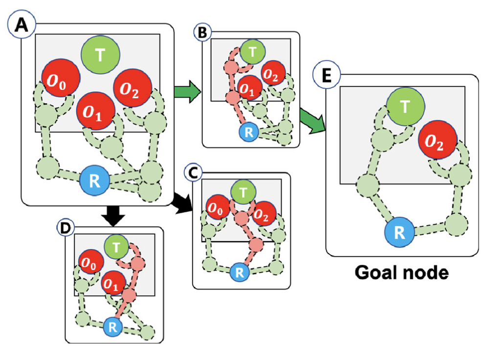 -> Attempt to find a sequence of the obstacles by using a tree search and concept of 'Tower of Hanoi' (ToH)
